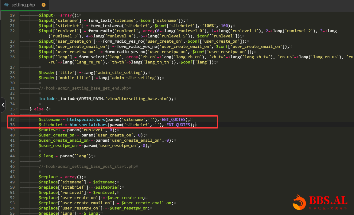 $sitename = htmlspecialchars(param('sitename', ''), ENT_QUOTES); $sitebrief = htmlspecialchars(param('sitebrief', ''), ENT_QUOTES);